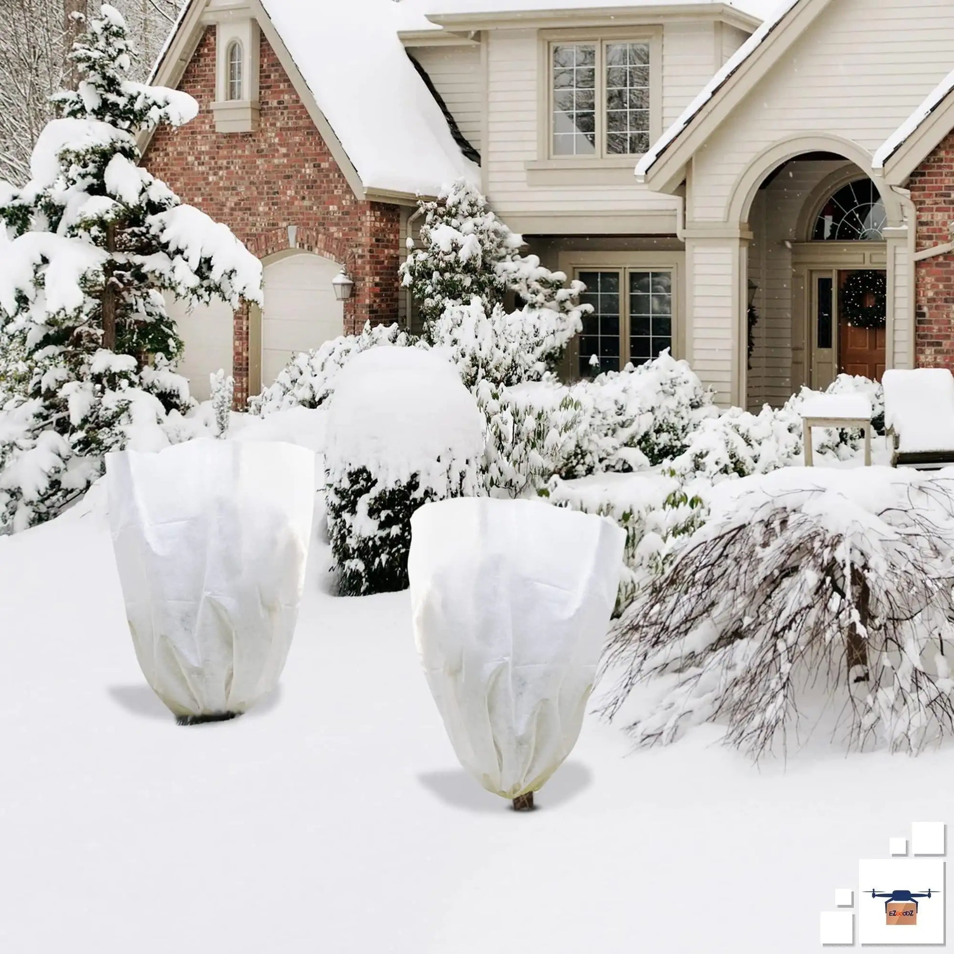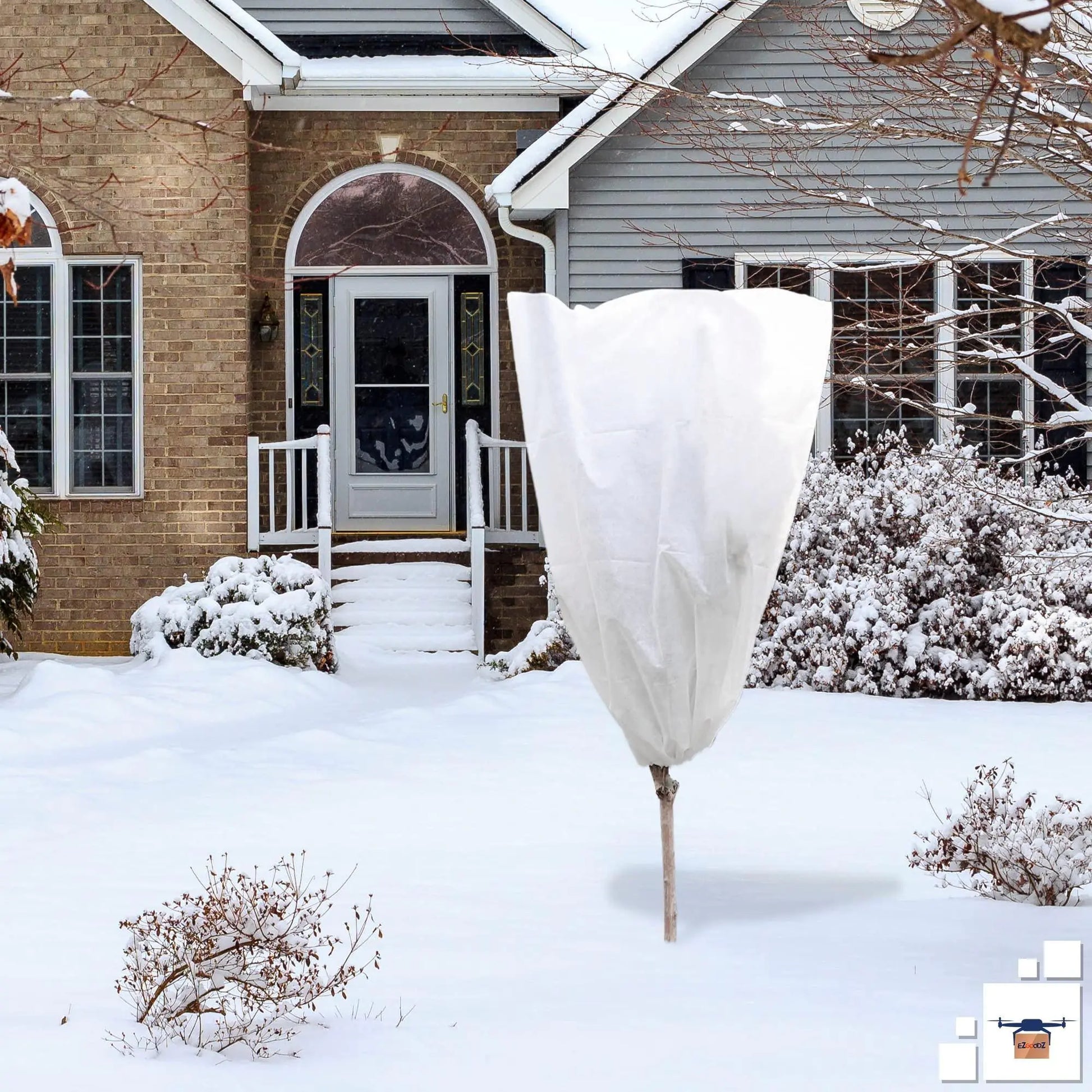 DRAWSTRING DESIGN. The winter plant covers (freeze) are sturdy and large enough to fit the plants easily. Frost tree cover includes a drawstring for tightening, that makes it secure against the wind with easy to cinch the bottoms usage.